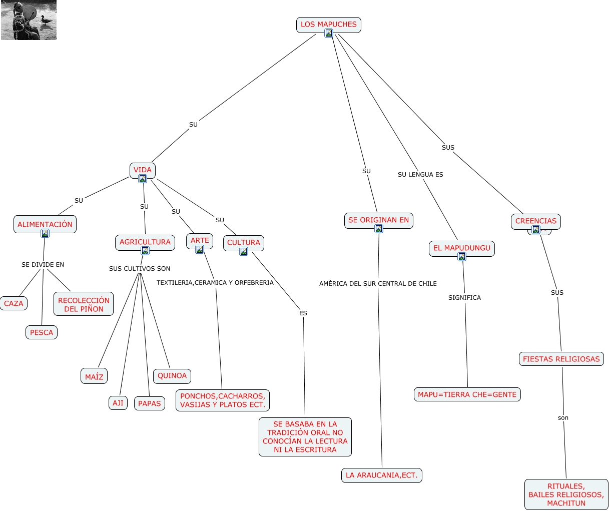 Este mapa conceptual tiene información relacionada a: LOS MAPUCHES, VIDA SU AGRICULTURA, ALIMENTACIÓN SE DIVIDE EN PESCA, VIDA SU ARTE, AGRICULTURA SUS CULTIVOS SON QUINOA, AGRICULTURA SUS CULTIVOS SON PAPAS, LOS MAPUCHES SU SE ORIGINAN EN, LOS MAPUCHES SU VIDA, SE ORIGINAN EN AMÉRICA DEL SUR CENTRAL DE CHILE LA ARAUCANIA,ECT., LOS MAPUCHES SUS ????, VIDA SU ALIMENTACIÓN