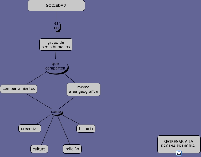 Este mapa conceptual tiene información relacionada a: QUE ES LA SOCIEDAD, misma area geografica como creencias, grupo de seres humanos que comparten misma area geografica, grupo de seres humanos que comparten comportamientos, misma area geografica como cultura, comportamientos como religión, misma area geografica como religión, misma area geografica como historia, comportamientos como historia, comportamientos como creencias, comportamientos como cultura