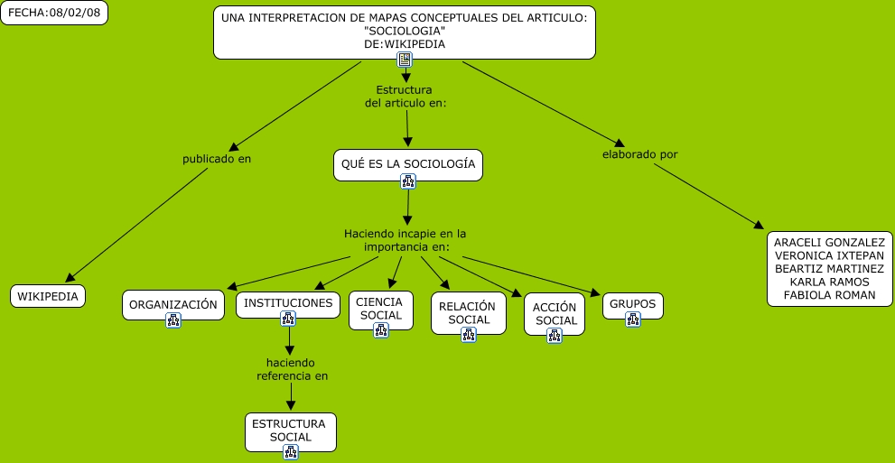 Este mapa conceptual tiene información relacionada a: index, UNA INTERPRETACION DE MAPAS CONCEPTUALES DEL ARTICULO: "SOCIOLOGIA" DE:WIKIPEDIA elaborado por ARACELI GONZALEZ VERONICA IXTEPAN BEARTIZ MARTINEZ KARLA RAMOS FABIOLA ROMAN, QUÉ ES LA SOCIOLOG�?A Haciendo incapie en la importancia en: ORGANIZACIÓN, UNA INTERPRETACION DE MAPAS CONCEPTUALES DEL ARTICULO: "SOCIOLOGIA" DE:WIKIPEDIA publicado en WIKIPEDIA, QUÉ ES LA SOCIOLOG�?A Haciendo incapie en la importancia en: GRUPOS, QUÉ ES LA SOCIOLOG�?A Haciendo incapie en la importancia en: ACCIÓN SOCIAL, UNA INTERPRETACION DE MAPAS CONCEPTUALES DEL ARTICULO: "SOCIOLOGIA" DE:WIKIPEDIA Estructura del articulo en: QUÉ ES LA SOCIOLOG�?A, INSTITUCIONES haciendo referencia en ESTRUCTURA SOCIAL, QUÉ ES LA SOCIOLOG�?A Haciendo incapie en la importancia en: CIENCIA SOCIAL, QUÉ ES LA SOCIOLOG�?A Haciendo incapie en la importancia en: INSTITUCIONES, QUÉ ES LA SOCIOLOG�?A Haciendo incapie en la importancia en: RELACIÓN SOCIAL