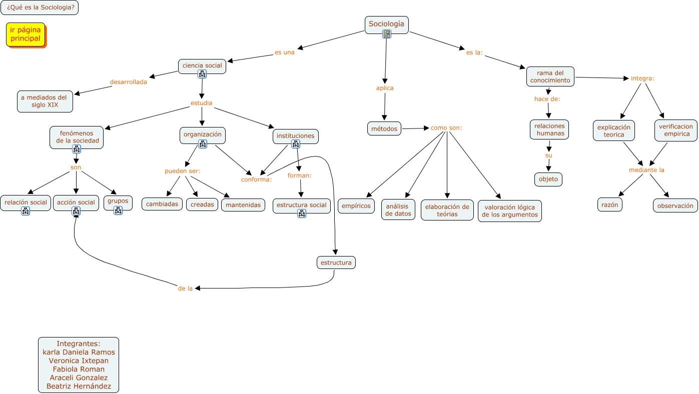 Este mapa conceptual tiene información relacionada a: sociologia, métodos como son: valoración lógica de los argumentos, rama del conocimiento hace de: relaciones humanas, métodos como son: elaboración de teórias, ciencia social desarrollada a mediados del siglo XIX, relaciones humanas su objeto, organización conforma: estructura, Sociología aplica métodos, verificacion empirica mediante la observación, métodos como son: empíricos, fenómenos de la sociedad son grupos