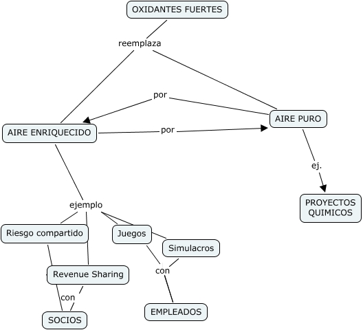 Este mapa conceptual tiene información relacionada a: OXIDANTES FUERTES, EMPLEADOS Juegos, Juegos ejemplo Riesgo compartido, Revenue Sharing ejemplo Riesgo compartido, Simulacros ejemplo Riesgo compartido, AIRE PURO por AIRE ENRIQUECIDO, OXIDANTES FUERTES reemplaza AIRE PURO, EMPLEADOS con Simulacros, SOCIOS con Revenue Sharing, AIRE ENRIQUECIDO por AIRE PURO, AIRE PURO ej. PROYECTOS QUIMICOS, AIRE ENRIQUECIDO reemplaza AIRE PURO, AIRE ENRIQUECIDO ejemplo Riesgo compartido, SOCIOS ???? Riesgo compartido
