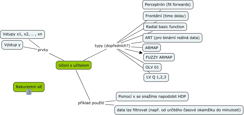 Tato Cmapa, vytvořená pomocí CmapTools, obsahuje informaci související s: Neuronove_site_uceni_s_ucitelem, Učení s učitelem příklad použití Pomocí x se snažíme napodobit HDP, Učení s učitelem prvky Výstup y, Učení s učitelem typy (dopředních?) LV Q 1,2,3, Učení s učitelem typy (dopředních?) Radial basic function, Učení s učitelem prvky Vstupy x1, x2, .. , xn, Učení s učitelem typy (dopředních?) OLV 01, Učení s učitelem typy (dopředních?) ART (pro binární reálná data), Učení s učitelem typy (dopředních?) ARMAP, Učení s učitelem typy (dopředních?) FUZZY ARMAP, Učení s učitelem typy (dopředních?) Perceptrón (fit forwards), Učení s učitelem příklad použití data lze filtrovat (např. od určitého časové okamžiku do minulosti), Učení s učitelem typy (dopředních?) Frontální (time delay)