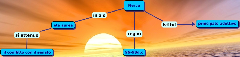 Questa Cmap, creata con IHMC CmapTools, contiene informazioni relative a: Nerva, Nerva regnò 96-98d.c, età aurea si attenuò il conflitto con il senato, Nerva istituì principato adottivo, Nerva inizio età aurea
