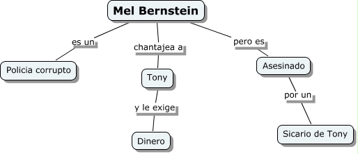 Mel Bernstein, Mel Bernstein pero es Asesinado, Asesinado por un Sicario de Tony, Mel Bernstein chantajea a Tony, Mel Bernstein es un Policia corrupto, Tony y le exige Dinero