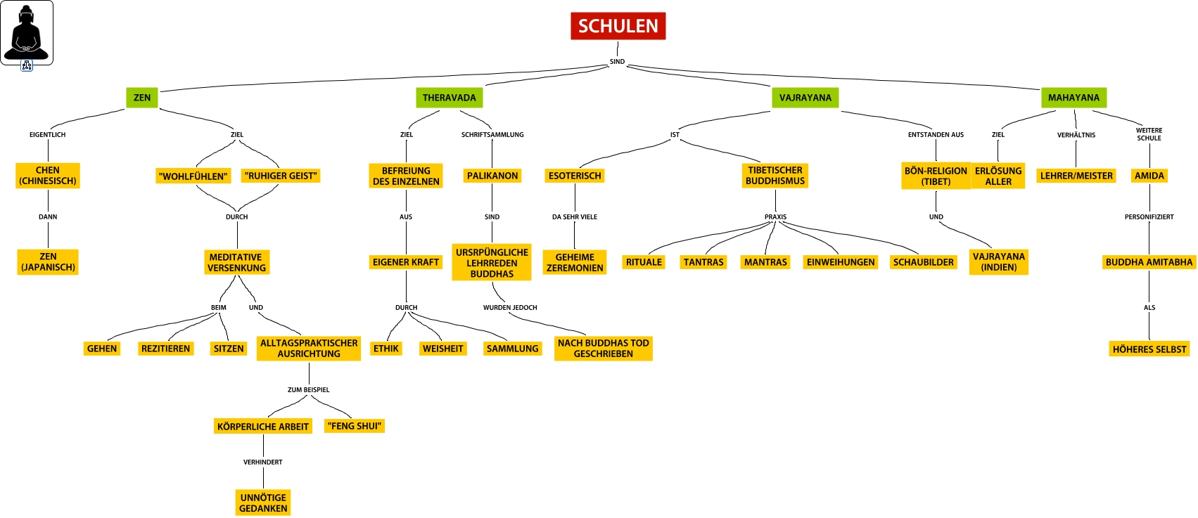 Dieses mit IHMC CmapTools erstellte CMap hat Informationen bezüglich: Schulen, SCHULEN SIND ZEN, BÖN-RELIGION (TIBET) UND VAJRAYANA (INDIEN), BUDDHA AMITABHA ALS HÖHERES SELBST, ZEN ZIEL "WOHLFÜHLEN", THERAVADA SCHRIFTSAMMLUNG PALIKANON, "WOHLFÜHLEN" DURCH MEDITATIVE VERSENKUNG, EIGENER KRAFT DURCH SAMMLUNG, VAJRAYANA ENTSTANDEN AUS BÖN-RELIGION (TIBET), URSRPÜNGLICHE LEHRREDEN BUDDHAS WURDEN JEDOCH NACH BUDDHAS TOD GESCHRIEBEN, MAHAYANA WEITERE SCHULE AMIDA, TIBETISCHER BUDDHISMUS PRAXIS EINWEIHUNGEN, TIBETISCHER BUDDHISMUS PRAXIS TANTRAS, AMIDA PERSONIFIZIERT BUDDHA AMITABHA, MEDITATIVE VERSENKUNG BEIM GEHEN, ESOTERISCH DA SEHR VIELE GEHEIME ZEREMONIEN, SCHULEN SIND MAHAYANA, KÖRPERLICHE ARBEIT VERHINDERT UNNÖTIGE GEDANKEN, MEDITATIVE VERSENKUNG BEIM SITZEN, CHEN (CHINESISCH) DANN ZEN (JAPANISCH), VAJRAYANA IST TIBETISCHER BUDDHISMUS