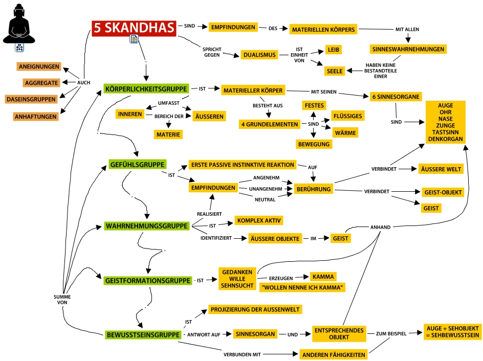 Dieses mit IHMC CmapTools erstellte CMap hat Informationen bezüglich: 5_Skandhas, GEISTFORMATIONSGRUPPE . BEWUSSTSEINSGRUPPE, DUALISMUS IST EINHEIT VON SEELE, 4 GRUNDELEMENTEN SIND FLÜSSIGES, 4 GRUNDELEMENTEN SIND FESTES, WAHRNEHMUNGSGRUPPE IST KOMPLEX AKTIV, KÖRPERLICHKEITSGRUPPE UMFASST INNEREN, BERÜHRUNG VERBINDET AUGE OHR NASE ZUNGE TASTSINN DENKORGAN, MATERIELLEN KÖRPERS MIT ALLEN SINNESWAHRNEHMUNGEN, BEWUSSTSEINSGRUPPE IST PROJIZIERUNG DER AUSSENWELT, 4 GRUNDELEMENTEN SIND WÄRME, MATERIELLER KÖRPER BESTEHT AUS 4 GRUNDELEMENTEN, SINNESWAHRNEHMUNGEN HABEN KEINE BESTANDTEILE EINER SEELE, 5 SKANDHAS . KÖRPERLICHKEITSGRUPPE, ENTSPRECHENDES OBJEKT ANHAND AUGE OHR NASE ZUNGE TASTSINN DENKORGAN, ÄUSSERE OBJEKTE IM GEIST, WAHRNEHMUNGSGRUPPE . GEISTFORMATIONSGRUPPE, BEWUSSTSEINSGRUPPE SUMME VON GEFÜHLSGRUPPE, ERSTE PASSIVE INSTINKTIVE REAKTION AUF BERÜHRUNG, 5 SKANDHAS AUCH AGGREGATE, BEWUSSTSEINSGRUPPE ANTWORT AUF SINNESORGAN