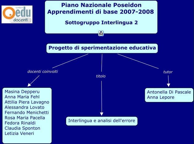 Questa Cmap, creata con IHMC CmapTools, contiene informazioni relative a: Copertina progetto, Progetto di sperimentazione educativa docenti coinvolti Masina Depperu Anna Maria Fehl Attilia Piera Lavagno Alessandra Lovato Fernando Menichetti Rosa Maria Pacella Fedora Rinaldi Claudia Sponton Letizia Veneri, Progetto di sperimentazione educativa tutor Antonella Di Pascale Anna Lepore, Progetto di sperimentazione educativa titolo Interlingua e analisi dell'errore