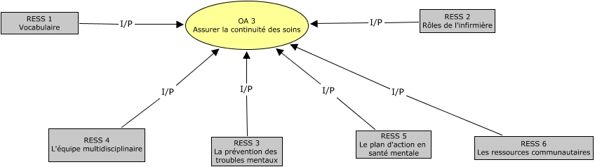 Cette carte conceptuelle, cree avec IHMC CmapTools, contient des informations liees a : OA 3, RESS 6 Les ressources communautaires I/P OA 3 Assurer la continuité des soins