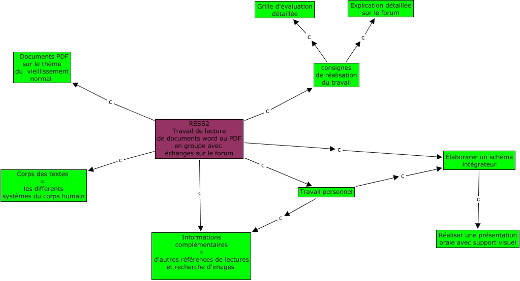Cette carte conceptuelle, cree avec IHMC CmapTools, contient des informations liees a : RESS2OA1, Travail personnel c Élaborarer un schéma intégrateur, RESS2 Travail de lecture de documents word ou PDF en groupe avec échanges sur le forum c Élaborarer un schéma intégrateur, Travail personnel c Informations complémentaires = d'autres références de lectures et recherche d'images, Élaborarer un schéma intégrateur c Réaliser une présentation orale avec support visuel, consignes de réalisation du travail c Grille d'évaluation détaillée, consignes de réalisation du travail c Explication détaillée sur le forum, RESS2 Travail de lecture de documents word ou PDF en groupe avec échanges sur le forum c Informations complémentaires = d'autres références de lectures et recherche d'images, RESS2 Travail de lecture de documents word ou PDF en groupe avec échanges sur le forum c consignes de réalisation du travail, RESS2 Travail de lecture de documents word ou PDF en groupe avec échanges sur le forum c Documents PDF sur le thème du vieillissement normal, RESS2 Travail de lecture de documents word ou PDF en groupe avec échanges sur le forum c Corps des textes = les differents systèmes du corps humain, RESS2 Travail de lecture de documents word ou PDF en groupe avec échanges sur le forum c Travail personnel