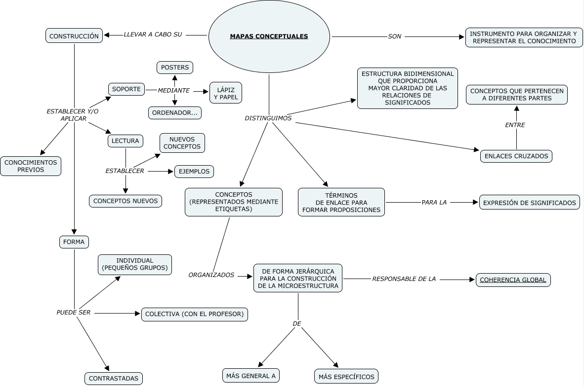 Este Cmap, tiene información relacionada con: MAPAS CONCEPTUALES, LECTURA ESTABLECER NUEVOS CONCEPTOS, CONSTRUCCIÓN ESTABLECER Y/O APLICAR SOPORTE, MAPAS CONCEPTUALES DISTINGUIMOS ESTRUCTURA BIDIMENSIONAL QUE PROPORCIONA MAYOR CLARIDAD DE LAS RELACIONES DE SIGNIFICADOS, CONSTRUCCIÓN ESTABLECER Y/O APLICAR FORMA, FORMA PUEDE SER CONTRASTADAS, MAPAS CONCEPTUALES SON INSTRUMENTO PARA ORGANIZAR Y REPRESENTAR EL CONOCIMIENTO, LECTURA ESTABLECER EJEMPLOS, MAPAS CONCEPTUALES DISTINGUIMOS ENLACES CRUZADOS, CONSTRUCCIÓN ESTABLECER Y/O APLICAR LECTURA, MAPAS CONCEPTUALES LLEVAR A CABO SU CONSTRUCCIÓN, CONSTRUCCIÓN ESTABLECER Y/O APLICAR CONOCIMIENTOS PREVIOS, FORMA PUEDE SER INDIVIDUAL (PEQUEÑOS GRUPOS), DE FORMA JERÁRQUICA PARA LA CONSTRUCCIÓN DE LA MICROESTRUCTURA DE MÁS GENERAL A, DE FORMA JERÁRQUICA PARA LA CONSTRUCCIÓN DE LA MICROESTRUCTURA DE MÁS ESPECÍFICOS, ENLACES CRUZADOS ENTRE CONCEPTOS QUE PERTENECEN A DIFERENTES PARTES, CONCEPTOS (REPRESENTADOS MEDIANTE ETIQUETAS) ORGANIZADOS DE FORMA JERÁRQUICA PARA LA CONSTRUCCIÓN DE LA MICROESTRUCTURA, SOPORTE MEDIANTE POSTERS, SOPORTE MEDIANTE ORDENADOR..., FORMA PUEDE SER COLECTIVA (CON EL PROFESOR), DE FORMA JERÁRQUICA PARA LA CONSTRUCCIÓN DE LA MICROESTRUCTURA RESPONSABLE DE LA COHERENCIA GLOBAL
