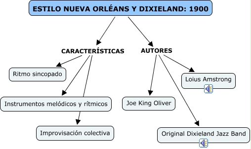 Este Cmap, tiene información relacionada con: Nueva_Orleans, ESTILO NUEVA ORLÉANS Y DIXIELAND: 1900 AUTORES Loius Amstrong, ESTILO NUEVA ORLÉANS Y DIXIELAND: 1900 AUTORES Original Dixieland Jazz Band, ESTILO NUEVA ORLÉANS Y DIXIELAND: 1900 CARACTERÍSTICAS Ritmo sincopado, ESTILO NUEVA ORLÉANS Y DIXIELAND: 1900 AUTORES Joe King Oliver, ESTILO NUEVA ORLÉANS Y DIXIELAND: 1900 CARACTERÍSTICAS Instrumentos melódicos y rítmicos, ESTILO NUEVA ORLÉANS Y DIXIELAND: 1900 CARACTERÍSTICAS Improvisación colectiva