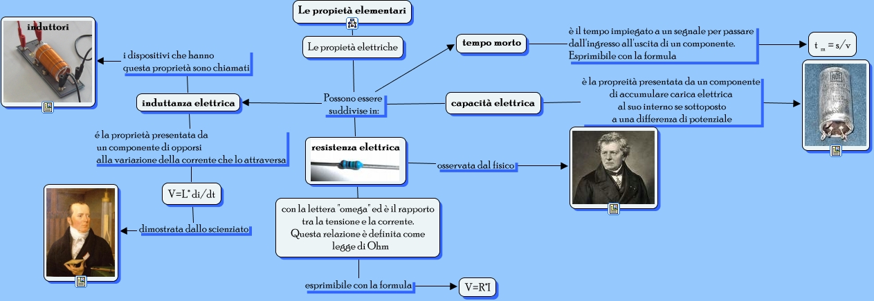 Questa Cmap, creata con IHMC CmapTools, contiene informazioni relative a: Le propietà elettriche, capacità elettrica Possono essere suddivise in: resistenza elettrica, resistenza elettrica osservata dal fisico, V=L* di/dt dimostrata dallo scienziato, resistenza elettrica si esprime con la lettera "omega" ed è il rapporto tra la tensione e la corrente. Questa relazione è definita come legge di Ohm, Le propietà elettriche Possono essere suddivise in: induttanza elettrica, Le propietà elettriche Possono essere suddivise in: tempo morto, con la lettera "omega" ed è il rapporto tra la tensione e la corrente. Questa relazione è definita come legge di Ohm esprimibile con la formula V=R*I, induttanza elettrica i dispositivi che hanno questa proprietà sono chiamati induttori, capacità elettrica Possono essere suddivise in: tempo morto, Le propietà elettriche Possono essere suddivise in: resistenza elettrica, capacità elettrica è la propreità presentata da un componente di accumulare carica elettrica al suo interno se sottoposto a una differenza di potenziale, tempo morto è il tempo impiegato a un segnale per passare dall'ingresso all'uscita di un componente. Esprimibile con la formula <math xmlns="http://www.w3.org/1998/Math/MathML"> <mrow> <mtext> t </mtext> <mmultiscripts> <mtext> </mtext> <mtext> m </mtext> <none/> </mmultiscripts> <mtext> = s/v </mtext> </mrow> </math>, capacità elettrica Possono essere suddivise in: induttanza elettrica, induttanza elettrica é la proprietà presentata da un componente di opporsi alla variazione della corrente che lo attraversa V=L* di/dt, Le propietà elettriche ???? Le propietà elementari