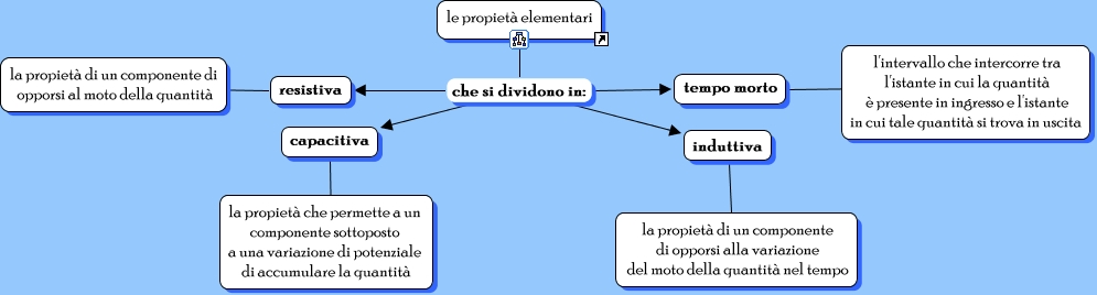 Questa Cmap, creata con IHMC CmapTools, contiene informazioni relative a: Le propietà elementari, le propietà elementari che si dividono in: tempo morto, le propietà elementari che si dividono in: induttiva, tempo morto si definisce come l'intervallo che intercorre tra l'istante in cui la quantità è presente in ingresso e l'istante in cui tale quantità si trova in uscita, induttiva si definisce come la propietà di un componente di opporsi alla variazione del moto della quantità nel tempo, resistiva ???? la propietà di un componente di opporsi al moto della quantità, capacitiva si definisce come la propietà che permette a un componente sottoposto a una variazione di potenziale di accumulare la quantità, le propietà elementari che si dividono in: capacitiva, le propietà elementari che si dividono in: resistiva