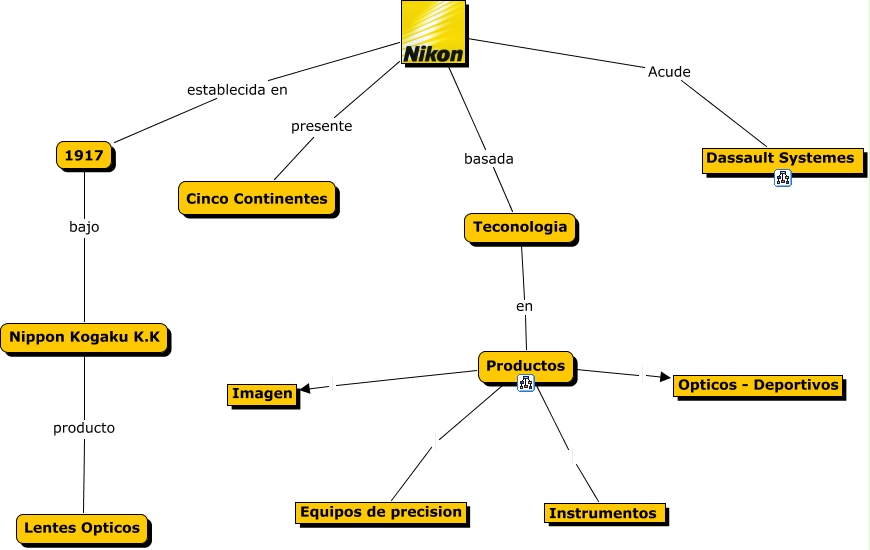 This Concept Map, created with IHMC CmapTools, has information related to: NIKON HISTORIA, Productos Opticos - Deportivos, Acude Dassault Systemes, Productos Imagen, Productos Equipos de precision, Nippon Kogaku K.K producto Lentes Opticos, Teconologia en Productos, establecida en 1917, presente Cinco Continentes, Productos Instrumentos, basada Teconologia, 1917 bajo Nippon Kogaku K.K