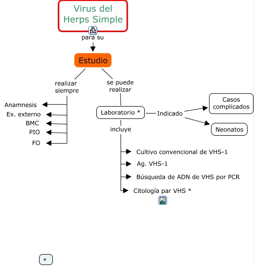 Este Cmap, tiene información relacionada con: Estudio, Laboratorio * Indicado Neonatos, Laboratorio * incluye Ag. VHS-1, Estudio realizar siempre FO, Estudio realizar siempre BMC, Laboratorio * incluye Citología par VHS *, Laboratorio * incluye Búsqueda de ADN de VHS por PCR, Estudio se puede realizar Laboratorio *, Estudio realizar siempre PIO, Estudio realizar siempre Anamnesis, Laboratorio * Indicado Casos complicados, Virus del Herps Simple para su Estudio, Estudio realizar siempre Ex. externo, Laboratorio * incluye Cultivo convencional de VHS-1