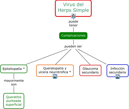 Este Cmap, tiene información relacionada con: Complicaciones, Complicaciones pueden ser Epiteliopatía *, Complicaciones pueden ser Queratopatia y ulcera neurotrofica *, Virus del Herps Simple puede tener Complicaciones, Epiteliopatía * mayormente son Queratitis punteada superficial, Complicaciones pueden ser Glaucoma secundario, Complicaciones pueden ser Infección secundaria