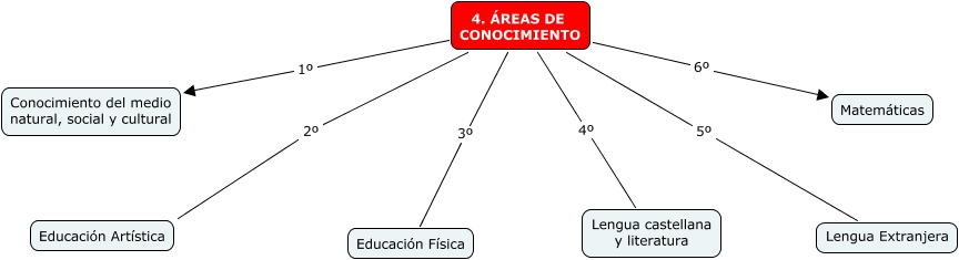 Este Cmap, tiene información relacionada con: areas de conocimiento, 4. ÁREAS DE CONOCIMIENTO 3º Educación Física, 4. ÁREAS DE CONOCIMIENTO 5º Lengua Extranjera, 4. ÁREAS DE CONOCIMIENTO 4º Lengua castellana y literatura, 4. ÁREAS DE CONOCIMIENTO 1º Conocimiento del medio natural, social y cultural, 4. ÁREAS DE CONOCIMIENTO 2º Educación Artística, 4. ÁREAS DE CONOCIMIENTO 6º Matemáticas