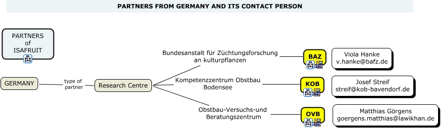 Germany, Research Centre Obstbau-Versuchs-und Beratungszentrum OVB, Research Centre Bundesanstalt für Züchtungsforschung an kulturpflanzen BAZ, GERMANY type of partner Research Centre, Research Centre Kompetenzzentrum Obstbau Bodensee KOB