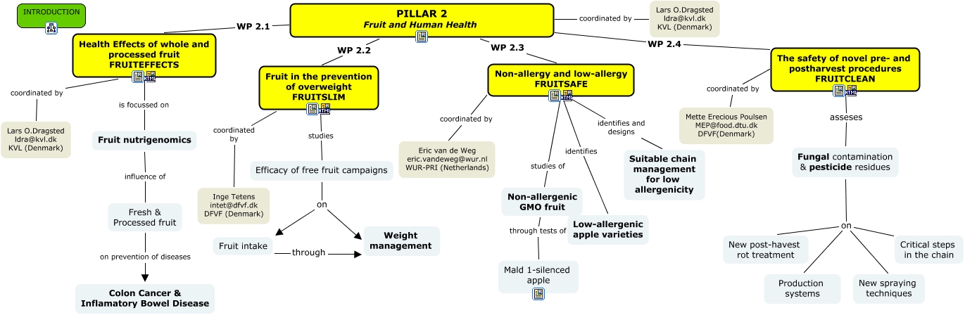 Isafruit's PILLAR 2, Fruit in the prevention of overweight FRUITSLIM studies Efficacy of free fruit campaigns, Health Effects of whole and processed fruit FRUITEFFECTS is focussed on Fruit nutrigenomics, PILLAR 2 Fruit and Human Health WP 2.2 Fruit in the prevention of overweight FRUITSLIM, PILLAR 2 Fruit and Human Health WP 2.3 Non-allergy and low-allergy FRUITSAFE, Fungal contamination & pesticide residues on Production systems, Fruit nutrigenomics influence of Fresh & Processed fruit, PILLAR 2 Fruit and Human Health WP 2.1 Health Effects of whole and processed fruit FRUITEFFECTS, PILLAR 2 Fruit and Human Health coordinated by Lars O.Dragsted ldra@kvl.dk KVL (Denmark), Non-allergy and low-allergy FRUITSAFE identifies and designs Suitable chain management for low allergenicity, Fungal contamination & pesticide residues on New spraying techniques