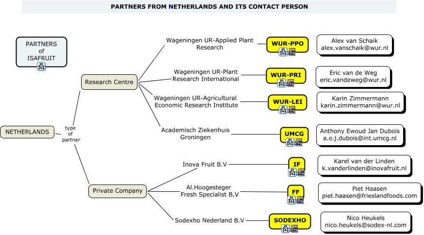 Netherlands, Private Company Sodexho Nederland B.V SODEXHO, NETHERLANDS type of partner Research Centre, Research Centre Wageningen UR-Applied Plant Research WUR-PPO, Research Centre Wageningen UR-Plant Research International WUR-PRI, NETHERLANDS type of partner Private Company, Research Centre Academisch Ziekenhuis Groningen UMCG, Private Company Al.Hoogesteger Fresh Specialist B.V FF, Research Centre Wageningen UR-Agricultural Economic Research Institute WUR-LEI, Private Company Inova Fruit B.V IF