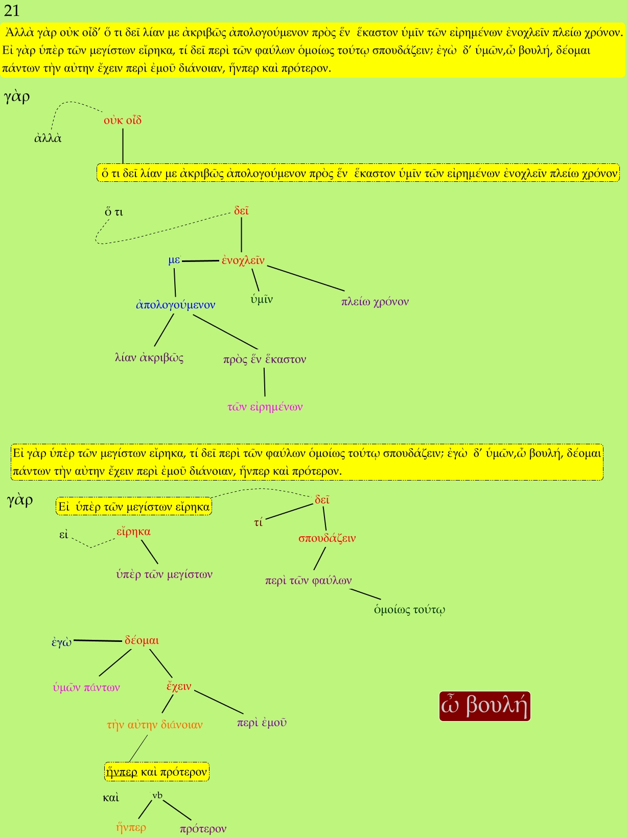 Este Cmap, tiene información relacionada con: frag. 21, ὁμοίως τούτῳ ???? περὶ τῶν φαύλων, ἥνπερ καὶ πρότερον ???? τὴν αὐτην διάνοιαν, εἰ ???? εἴρηκα, τί ???? δεῖ, ἥνπερ ???? vb, ὅ τι ???? δεῖ, ὅ τι δεῖ λίαν με ἀκριβῶς ἀπολογούμενον πρὸς ἕν ἕκαστον ὑμῖν τῶν εἰρημένων ἐνοχλεῖν πλείω χρόνον ???? οὐκ οἶδ, τὴν αὐτην διάνοιαν ???? ἔχειν, ἐνοχλεῖν ???? δεῖ, ἀπολογούμενον ???? ἐνοχλεῖν, ἀπολογούμενον ???? με, πλείω χρόνον ???? ἐνοχλεῖν, ἔχειν ???? δέομαι, ὑπὲρ τῶν μεγίστων ???? εἴρηκα, ἀπολογούμενον ???? πρὸς ἕν ἕκαστον, ἀλλὰ ???? οὐκ οἶδ, λίαν ἀκριβῶς ???? ἀπολογούμενον, ὑμῖν ???? ἐνοχλεῖν, πρότερον ???? vb, Εἰ ὑπὲρ τῶν μεγίστων εἴρηκα ???? δεῖ