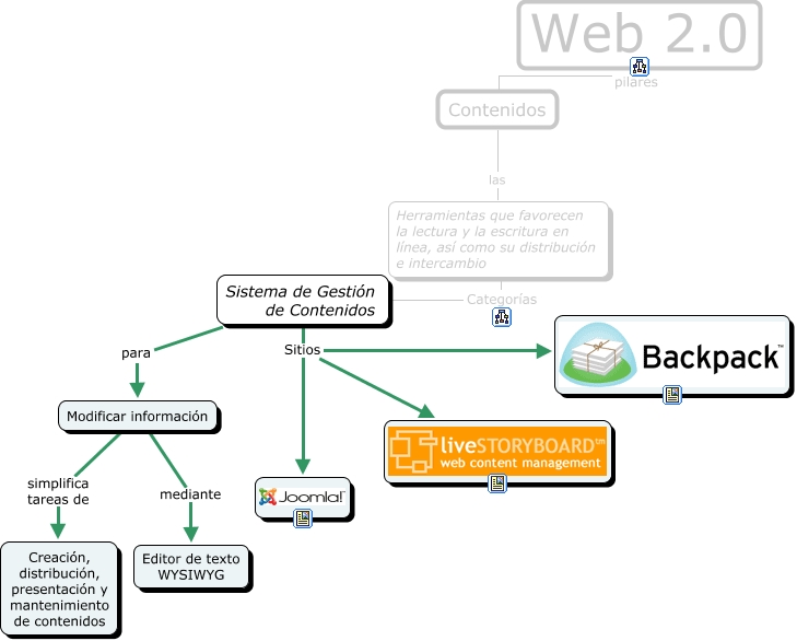 Este Cmap, tiene información relacionada con: Uso y Páginas de Sistema de Gestion de contenidos, Sistema de Gestión de Contenidos Sitios, Sistema de Gestión de Contenidos para Modificar información, Web 2.0 pilares Contenidos, Modificar información mediante Editor de texto WYSIWYG, Sistema de Gestión de Contenidos Sitios, Modificar información simplifica tareas de Creación, distribución, presentación y mantenimiento de contenidos, Sistema de Gestión de Contenidos Sitios, Herramientas que favorecen la lectura y la escritura en línea, así como su distribución e intercambio Categorías Sistema de Gestión de Contenidos, Contenidos las Herramientas que favorecen la lectura y la escritura en línea, así como su distribución e intercambio