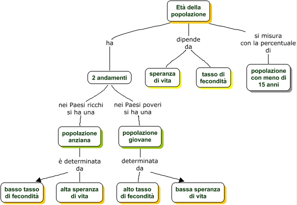 Questa Cmap, creata con IHMC CmapTools, contiene informazioni relative a: 331) Popolazione età, popolazione giovane determinata da alto tasso di fecondità, popolazione giovane determinata da bassa speranza di vita, Età della popolazione ha 2 andamenti, Età della popolazione dipende da tasso di fecondità, 2 andamenti nei Paesi ricchi si ha una popolazione anziana, 2 andamenti nei Paesi poveri si ha una popolazione giovane, Età della popolazione dipende da speranza di vita, popolazione anziana è determinata da basso tasso di fecondità, Età della popolazione si misura con la percentuale di popolazione con meno di 15 anni, popolazione anziana è determinata da alta speranza di vita