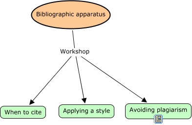 This Concept Map, created with IHMC CmapTools, has information related to: Bib_apparatus, Bibliographic apparatus Workshop Applying a style, Bibliographic apparatus Workshop Avoiding plagiarism, Bibliographic apparatus Workshop When to cite
