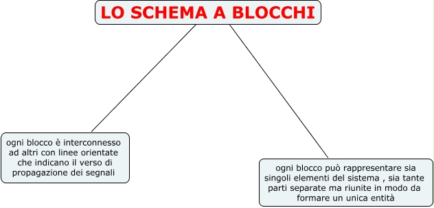 Questa Cmap, creata con IHMC CmapTools, contiene informazioni relative a: schema a blocchi, LO SCHEMA A BLOCCHI ???? ogni blocco può rappresentare sia singoli elementi del sistema , sia tante parti separate ma riunite in modo da formare un unica entità, LO SCHEMA A BLOCCHI ???? ogni blocco è interconnesso ad altri con linee orientate che indicano il verso di propagazione dei segnali