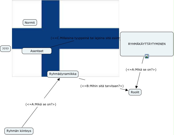 Tämä käsitekartta sisältää tietoa, joka liittyy aiheeseen: Sipoo, Ryhmädynamiikka (<=B:Mihin sitä tarvitaan?>) Roolit, RYHMÄKÄYTTÄYTYMINEN (<=A:Mikä se on?>) Roolit, Asenteet (<=C.Millaisina tyyppeinä tai lajeina sitä esiintyy?>) RYHMÄKÄYTTÄYTYMINEN, Ryhmän kiinteys (<=A:Mikä se on?>) Ryhmädynamiikka
