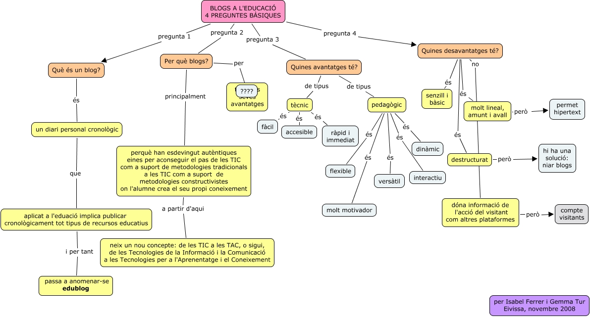 Este Cmap, tiene información relacionada con: BLOCS A L'EDUCACIÓ, tècnic és fàcil, BLOGS A L'EDUCACIÓ 4 PREGUNTES BÀSIQUES pregunta 2 Per què blogs?, Per què blogs? per ????, un diari personal cronològic que aplicat a l'eduació implica publicar cronològicament tot tipus de recursos educatius, Què és un blog? és un diari personal cronològic, Quines desavantatges té? és senzill i bàsic, pedagògic és versàtil, aplicat a l'eduació implica publicar cronològicament tot tipus de recursos educatius i per tant passa a anomenar-se edublog, Quines avantatges té? de tipus pedagògic, Quines desavantatges té? no dóna informació de l'acció del visitant com altres plataformes, tècnic és accesible, pedagògic és molt motivador, dóna informació de l'acció del visitant com altres plataformes però compte visitants, tècnic és ràpid i immediat, perquè han esdevingut autèntiques eines per aconseguir el pas de les TIC com a suport de metodologies tradicionals a les TIC com a suport de metodologies constructivistes on l'alumne crea el seu propi coneixement a partir d'aqui neix un nou concepte: de les TIC a les TAC, o sigui, de les Tecnologies de la Informació i la Comunicació a les Tecnologies per a l'Aprenentatge i el Coneixement, Quines desavantatges té? és destructurat, pedagògic és dinàmic, molt lineal, amunt i avall però permet hipertext, pedagògic és interactiu, pedagògic és flexible