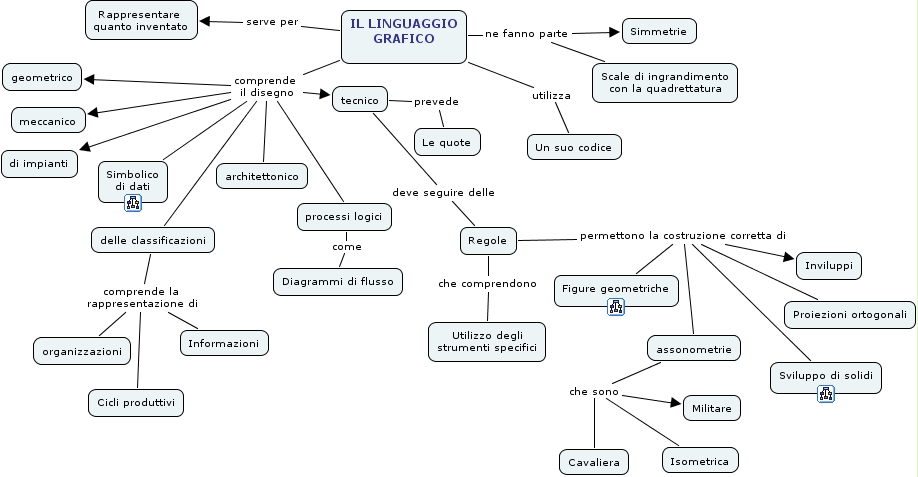 linguaggio-grafico, IL LINGUAGGIO GRAFICO comprende il disegno geometrico, IL LINGUAGGIO GRAFICO comprende il disegno tecnico, assonometrie che sono Cavaliera, delle classificazioni comprende la rappresentazione di Cicli produttivi, IL LINGUAGGIO GRAFICO comprende il disegno di impianti, delle classificazioni comprende la rappresentazione di Informazioni, processi logici come Diagrammi di flusso, IL LINGUAGGIO GRAFICO comprende il disegno Simbolico di dati, tecnico deve seguire delle Regole, tecnico prevede Le quote