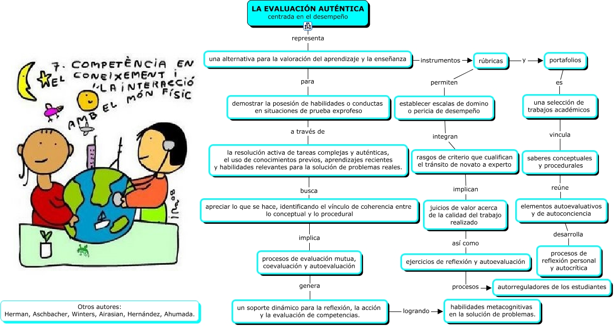 Este Cmap, tiene información relacionada con: La evaluación, demostrar la posesión de habilidades o conductas en situaciones de prueba exprofeso a través de la resolución activa de tareas complejas y auténticas, el uso de conocimientos previos, aprendizajes recientes y habilidades relevantes para la solución de problemas reales., una alternativa para la valoración del aprendizaje y la enseñanza para demostrar la posesión de habilidades o conductas en situaciones de prueba exprofeso, la resolución activa de tareas complejas y auténticas, el uso de conocimientos previos, aprendizajes recientes y habilidades relevantes para la solución de problemas reales. busca apreciar lo que se hace, identificando el vínculo de coherencia entre lo conceptual y lo procedural, establecer escalas de domino o pericia de desempeño integran rasgos de criterio que cualifican el tránsito de novato a experto, saberes conceptuales y procedurales reúne elementos autoevaluativos y de autoconciencia, LA EVALUACIÓN AUTÉNTICA centrada en el desempeño representa una alternativa para la valoración del aprendizaje y la enseñanza, elementos autoevaluativos y de autoconciencia desarrolla procesos de reflexión personal y autocrítica, procesos de evaluación mutua, coevaluación y autoevaluación genera un soporte dinámico para la reflexión, la acción y la evaluación de competencias., rúbricas permiten establecer escalas de domino o pericia de desempeño, una selección de trabajos académicos vincula saberes conceptuales y procedurales, rasgos de criterio que cualifican el tránsito de novato a experto implican juicios de valor acerca de la calidad del trabajo realizado, un soporte dinámico para la reflexión, la acción y la evaluación de competencias. logrando habilidades metacognitivas en la solución de problemas., una alternativa para la valoración del aprendizaje y la enseñanza instrumentos rúbricas, rúbricas y portafolios, portafolios es una selección de trabajos académicos, apreciar lo que se hace, identificando el vínculo de coherencia entre lo conceptual y lo procedural implica procesos de evaluación mutua, coevaluación y autoevaluación, juicios de valor acerca de la calidad del trabajo realizado así como ejercicios de reflexión y autoevaluación, ejercicios de reflexión y autoevaluación procesos autorreguladores de los estudiantes