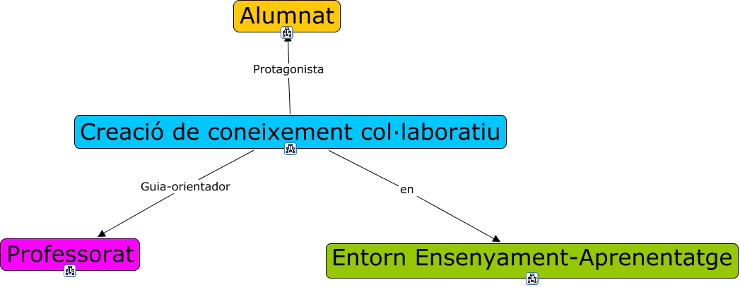 Este Cmap, tiene información relacionada con: creacioconeixement, Creació de coneixement col·laboratiu en Entorn Ensenyament-Aprenentatge, Creació de coneixement col·laboratiu Guia-orientador Professorat, Creació de coneixement col·laboratiu Protagonista Alumnat