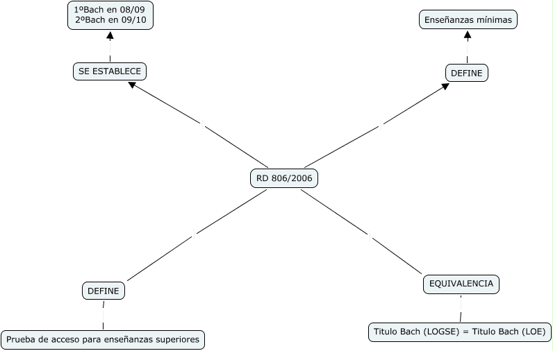 Este Cmap, tiene información relacionada con: rd 806 enseñanza, RD 806/2006 DEFINE, SE ESTABLECE 1ºBach en 08/09 2ºBach en 09/10, RD 806/2006 EQUIVALENCIA, RD 806/2006 DEFINE, DEFINE Prueba de acceso para enseñanzas superiores, EQUIVALENCIA Titulo Bach (LOGSE) = Titulo Bach (LOE), RD 806/2006 SE ESTABLECE, DEFINE Enseñanzas mínimas