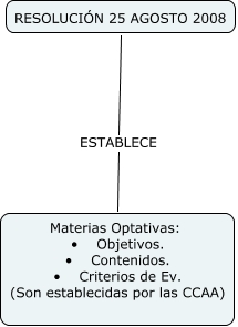 Este Cmap, tiene información relacionada con: RESOLUCION 25 ENSEÑANZA, RESOLUCIÓN 25 AGOSTO 2008 ESTABLECE Materias Optativas: • Objetivos. • Contenidos. • Criterios de Ev. (Son establecidas por las CCAA)
