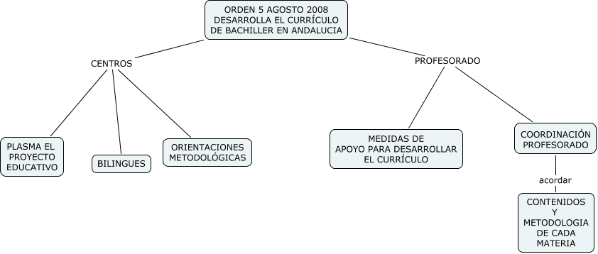 Este Cmap, tiene información relacionada con: ORDEN 5 AGOSTO CENTROS Y PROF, COORDINACIÓN PROFESORADO acordar CONTENIDOS Y METODOLOGIA DE CADA MATERIA, ORDEN 5 AGOSTO 2008 DESARROLLA EL CURRÍCULO DE BACHILLER EN ANDALUCIA CENTROS PLASMA EL PROYECTO EDUCATIVO, ORDEN 5 AGOSTO 2008 DESARROLLA EL CURRÍCULO DE BACHILLER EN ANDALUCIA PROFESORADO MEDIDAS DE APOYO PARA DESARROLLAR EL CURRÍCULO, ORDEN 5 AGOSTO 2008 DESARROLLA EL CURRÍCULO DE BACHILLER EN ANDALUCIA PROFESORADO COORDINACIÓN PROFESORADO, ORDEN 5 AGOSTO 2008 DESARROLLA EL CURRÍCULO DE BACHILLER EN ANDALUCIA CENTROS BILINGUES, ORDEN 5 AGOSTO 2008 DESARROLLA EL CURRÍCULO DE BACHILLER EN ANDALUCIA CENTROS ORIENTACIONES METODOLÓGICAS
