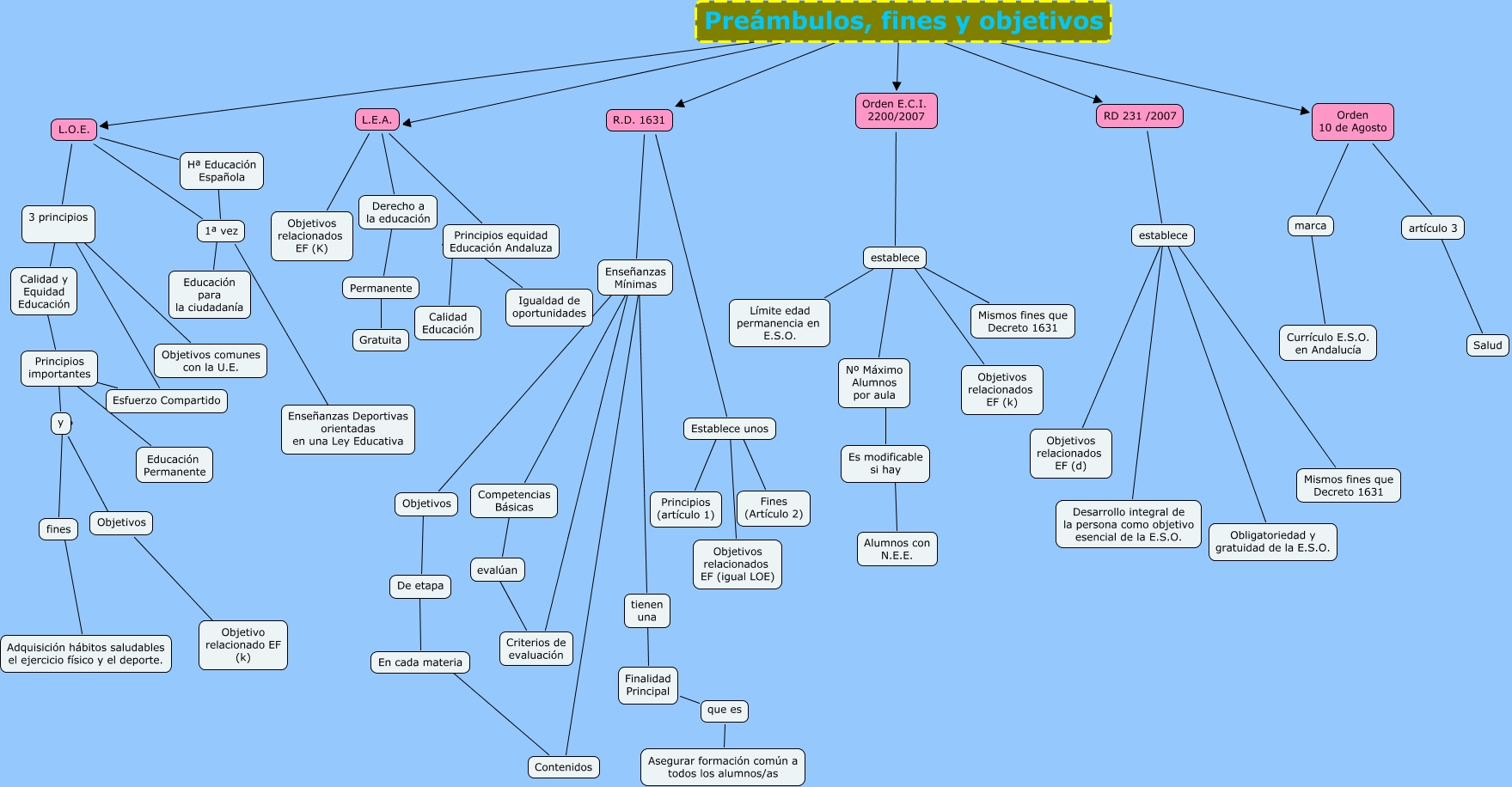 Este Cmap, tiene información relacionada con: Preambulos, fines y objetivos, 1ª vez ???? Educación para la ciudadanía, Finalidad Principal que es, Derecho a la educación ???? Permanente, R.D. 1631 ???? Enseñanzas Mínimas, 3 principios ???? Calidad y Equidad Educación, y ???? Objetivos, Orden E.C.I. 2200/2007 ???? establece, 3 principios ???? Esfuerzo Compartido, En cada materia ???? Contenidos, Preámbulos, fines y objetivos ???? L.E.A., L.O.E. ???? 1ª vez, establece ???? Objetivos relacionados EF (k), 3 principios ???? Objetivos comunes con la U.E., Objetivos ???? De etapa, Hª Educación Española ???? 1ª vez, Enseñanzas Mínimas ???? Competencias Básicas, L.E.A. ???? Objetivos relacionados EF (K), L.O.E. ???? 3 principios, que es Asegurar formación común a todos los alumnos/as, Esfuerzo Compartido ???? Principios importantes