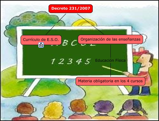 Este Cmap, tiene información relacionada con: Decreto 231 2007, Decreto 231/2007 Organización de las enseñanzas, Organización de las enseñanzas Educación Física Materia obligatoria en los 4 cursos, Decreto 231/2007 Currículo de E.S.O.
