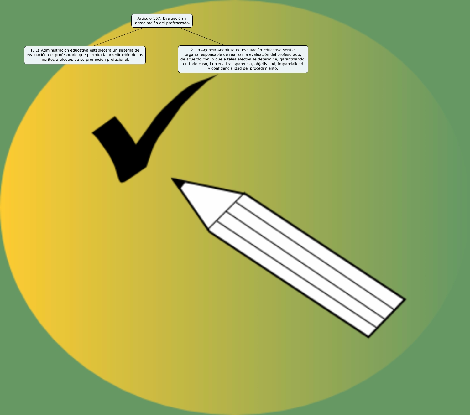 Este Cmap, tiene información relacionada con: LEA_art157, Artículo 157. Evaluación y acreditación del profesorado. ???? 1. La Administración educativa establecerá un sistema de evaluación del profesorado que permita la acreditación de los méritos a efectos de su promoción profesional., Artículo 157. Evaluación y acreditación del profesorado. ???? 2. La Agencia Andaluza de Evaluación Educativa será el órgano responsable de realizar la evaluación del profesorado, de acuerdo con lo que a tales efectos se determine, garantizando, en todo caso, la plena transparencia, objetividad, imparcialidad y confidencialidad del procedimiento.