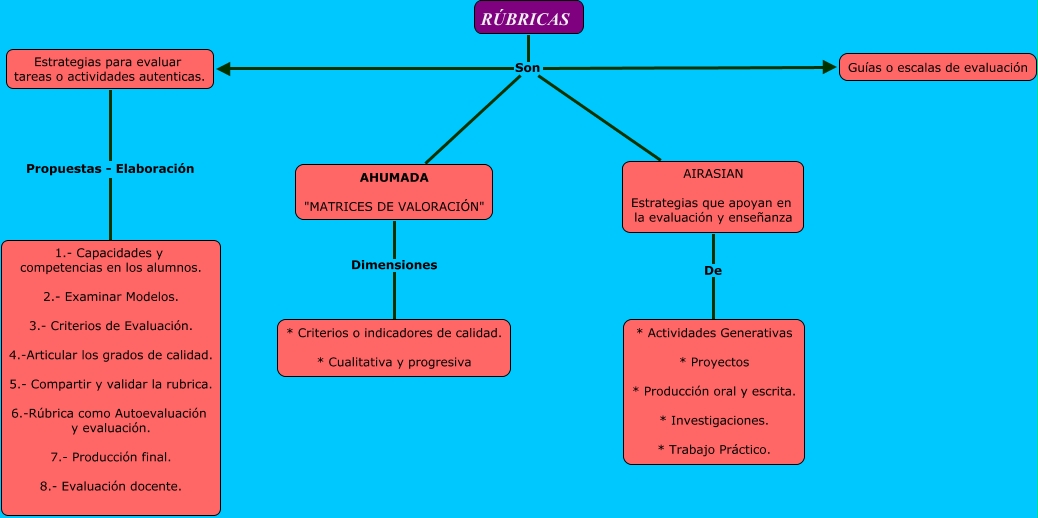 Este Cmap, tiene información relacionada con: CAPITULO 5.2, RÚBRICAS Son Guías o escalas de evaluación, RÚBRICAS Son AIRASIAN Estrategias que apoyan en la evaluación y enseñanza, AHUMADA "MATRICES DE VALORACIÓN" Dimensiones * Criterios o indicadores de calidad. * Cualitativa y progresiva, Estrategias para evaluar tareas o actividades autenticas. Propuestas - Elaboración 1.- Capacidades y competencias en los alumnos. 2.- Examinar Modelos. 3.- Criterios de Evaluación. 4.-Articular los grados de calidad. 5.- Compartir y validar la rubrica. 6.-Rúbrica como Autoevaluación y evaluación. 7.- Producción final. 8.- Evaluación docente., RÚBRICAS Son AHUMADA "MATRICES DE VALORACIÓN", RÚBRICAS Son Estrategias para evaluar tareas o actividades autenticas., AIRASIAN Estrategias que apoyan en la evaluación y enseñanza De * Actividades Generativas * Proyectos * Producción oral y escrita. * Investigaciones. * Trabajo Práctico.
