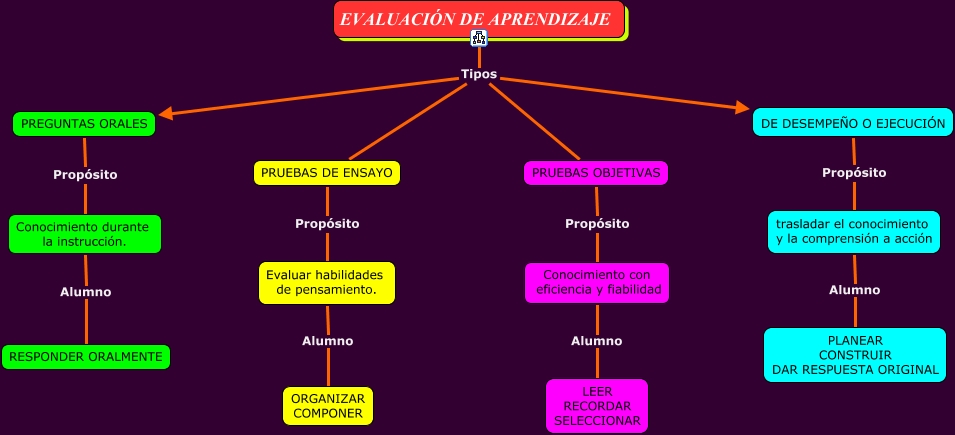 Este Cmap, tiene información relacionada con: CAPITULO 5.1, trasladar el conocimiento y la comprensión a acción Alumno PLANEAR CONSTRUIR DAR RESPUESTA ORIGINAL, EVALUACIÓN DE APRENDIZAJE Tipos PRUEBAS OBJETIVAS, Evaluar habilidades de pensamiento. Alumno ORGANIZAR COMPONER, Conocimiento durante la instrucción. Alumno RESPONDER ORALMENTE, EVALUACIÓN DE APRENDIZAJE Tipos DE DESEMPEÑO O EJECUCIÓN, EVALUACIÓN DE APRENDIZAJE Tipos PRUEBAS DE ENSAYO, PRUEBAS OBJETIVAS Propósito Conocimiento con eficiencia y fiabilidad, DE DESEMPEÑO O EJECUCIÓN Propósito trasladar el conocimiento y la comprensión a acción, Conocimiento con eficiencia y fiabilidad Alumno LEER RECORDAR SELECCIONAR, PREGUNTAS ORALES Propósito Conocimiento durante la instrucción., EVALUACIÓN DE APRENDIZAJE Tipos PREGUNTAS ORALES, PRUEBAS DE ENSAYO Propósito Evaluar habilidades de pensamiento.