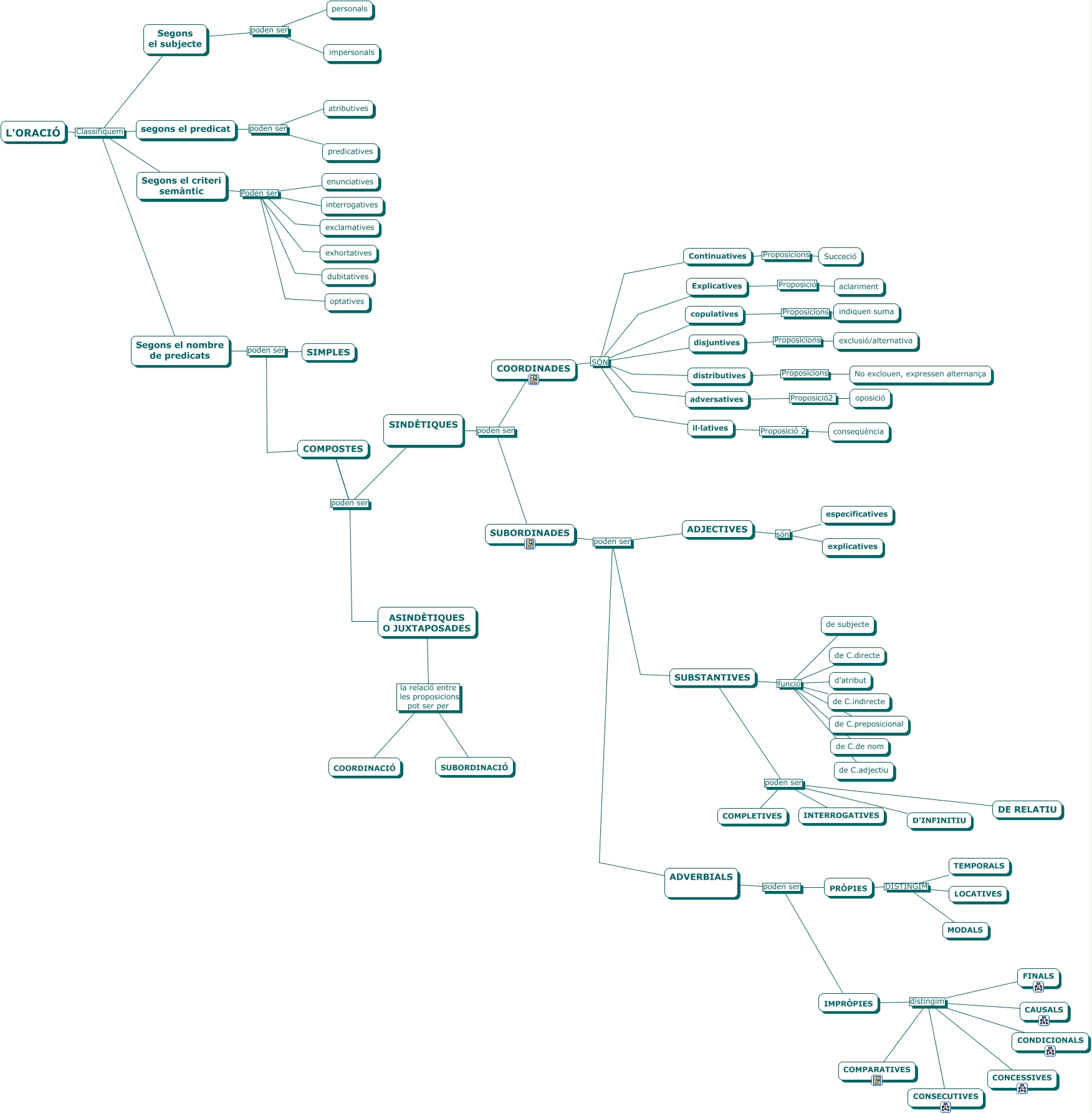 Este Cmap, tiene información relacionada con: Oracions, SUBSTANTIVES poden ser INTERROGATIVES, COMPOSTES poden ser SINDÈTIQUES, disjuntives SÓN Continuatives, il·latives Proposició 2 conseqüència, exhortatives Poden ser interrogatives, disjuntives SÓN COORDINADES, L'ORACIÓ Classifiquem Segons el nombre de predicats, PRÒPIES DISTINGIM LOCATIVES, SUBORDINADES poden ser ADJECTIVES, ADVERBIALS poden ser PRÒPIES, SUBORDINADES poden ser SUBSTANTIVES, SUBSTANTIVES funció de C.directe, dubitatives Poden ser interrogatives, distributives Proposicions No exclouen, expressen alternança, segons el predicat poden ser predicatives, dubitatives Poden ser enunciatives, optatives Poden ser enunciatives, disjuntives Proposicions exclusió/alternativa, segons el predicat poden ser atributives, SUBSTANTIVES funció d'atribut