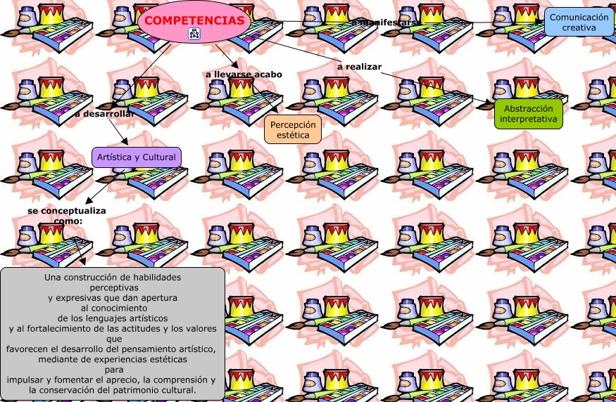 Este Cmap, tiene información relacionada con: MAPA SECUNDARIO 4, COMPETENCIAS a realizar Abstracción interpretativa, Artística y Cultural se conceptualiza como: Una construcción de habilidades perceptivas y expresivas que dan apertura al conocimiento de los lenguajes artísticos y al fortalecimiento de las actitudes y los valores que favorecen el desarrollo del pensamiento artístico, mediante de experiencias estéticas para impulsar y fomentar el aprecio, la comprensión y la conservación del patrimonio cultural., COMPETENCIAS a manifestarse Comunicación creativa, COMPETENCIAS a llevarse acabo Percepción estética, COMPETENCIAS a desarrollar Artística y Cultural