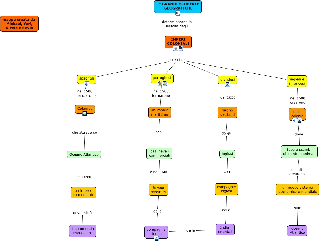 Questa Cmap, creata con IHMC CmapTools, contiene informazioni relative a: parte 3 le grandi scoperte e gli imperi coloniali, compagnie inglesi delle Indie orientali, portoghesi nel 1500 formarono un impero marittimo, IMPERI COLONIALI creati da portoghesi, inglesi con compagnie inglesi, inglesi e i francesi nel 1600 crearono delle colonie, delle colonie dove fecero scambi di piante e animali, furono sostituiti dalla compagnia riunita, basi navali commerciali e nel 1600 furono sostituiti, Colombo che attraversò Oceano Atlantico, compagnia riunita delle Indie orientali, IMPERI COLONIALI creati da spagnoli, spagnoli nel 1500 finanziarono Colombo, olandesi dal 1650 furono sostituiti, furono sostituiti da gli inglesi, fecero scambi di piante e animali quindi crearono un nuovo sistema economico e mondiale, IMPERI COLONIALI creati da olandesi, LE GRANDI SCOPERTE GEOGRAFICHE determinarono la nascita degli IMPERI COLONIALI, Oceano Atlantico che creò un impero continentale, un impero continentale dove iniziò il commercio triangolare, un nuovo sistema economico e mondiale sull' oceano Atlantico