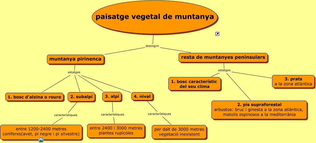 Este Cmap, tiene información relacionada con: tema3geogr6v, paisatge vegetal de muntanya distingim resta de muntanyes peninsulars, muntanya pirinenca estatges 1. bosc d'alzina o roure, 3. alpí característiques entre 2400 i 3000 metres plantes rupícoles, resta de muntanyes peninsulars estatges 1. bosc característic del seu clima, 2. subalpí característiques entre 1200-2400 metres coníferes(avet, pi negre i pi silvestre), muntanya pirinenca estatges 2. subalpí, muntanya pirinenca estatges 4. nival, paisatge vegetal de muntanya distingim muntanya pirinenca, 4. nival característiques per dalt de 3000 metres vegetació inexistent, resta de muntanyes peninsulars estatges 3. prats a la zona atlàntica, muntanya pirinenca estatges 3. alpí, resta de muntanyes peninsulars estatges 2. pis supraforestal arbustos: bruc i ginesta a la zona atlàntica, matolls espinosos a la mediterrània