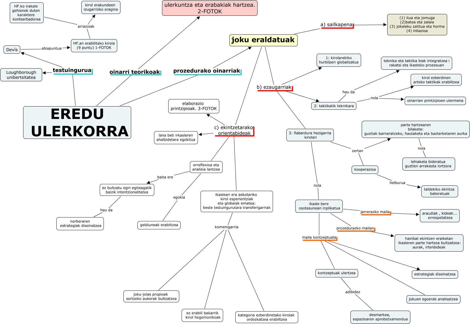 Este Cmap, tiene información relacionada con: Copia de eredu ulerkorra, joku eraldatuak a) sailkapena (1) itua eta jomuga (2)batea eta zalaia (3) jokaleku zatitua eta horma (4) inbazioa, joku eraldatuak b) ezaugarriak 2: taktikatik teknikara, Devís abiapuntua HF.an erabilitako kirola (9 puntu) 1-FOTOK, HF.ko irakale gehienek duten karaktere kontserbadorea arrazoiak HF.an erabilitako kirola (9 puntu) 1-FOTOK, joku eraldatuak b) ezaugarriak 1: kirolarekiko hurbilpen globalizatua, ikasleari era askotariko kirol esperientziak eta globalak ematea: beste testuingurutara transferigarriak komenigarria joku-jolas propioak sortzeko aukerak bultzatzea, erreflexioa eta analisia lantzea egokia geldiuneak erabiltzea, 3: ñabardura hezigarria kirolari zertan parte hartzearen bilaketa: guztiak barneratzeko, hautaketa eta bazterketaren aurka, ikasle bere osotasunean inplikatua prozedurazko mailan hainbat ekintzen eraiketan ikasleren parte hartzea bultzatzea: aurak, irtenbideak, 3: ñabardura hezigarria kirolari nola ikasle bere osotasunean inplikatua, 2: taktikatik teknikara hau da teknika eta taktika biak integratzea i rakatsi eta ikasteko prozesuan, ez bultzatu egin egiteagatik baizik intentzionalitatea hau da norberaren estrategiak diseinatzea, ikasle bere osotasunean inplikatua maila kontzeptuala estrategiak diseinatzea, erreflexioa eta analisia lantzea baita ere ez bultzatu egin egiteagatik baizik intentzionalitatea, HF.ko irakale gehienek duten karaktere kontserbadorea arrazoiak kirol erakundeen izugarrizko eragina, EREDU ULERKORRA prozedurako oinarriak joku eraldatuak, 2: taktikatik teknikara nola kirol ezberdinen arteko taktikak erabiltzea, EREDU ULERKORRA testuingurua Devís, joku eraldatuak c) ekintzetarako orientabideak erreflexioa eta analisia lantzea, joku eraldatuak b) ezaugarriak 3: ñabardura hezigarria kirolari