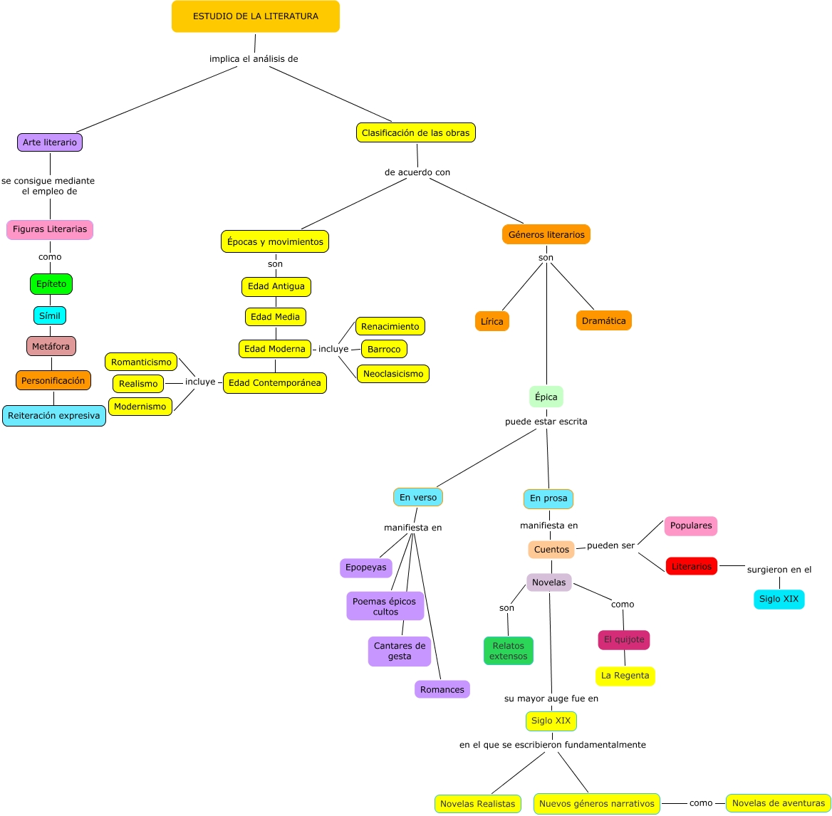 Este mapa conceptual tiene información relacionada a: literatura 1, Edad Media ???? Edad Moderna, Clasificación de las obras de acuerdo con Épocas y movimientos, Edad Moderna incluye Renacimiento, Géneros literarios son Lírica, Cuentos ???? Novelas, Arte literario se consigue mediante el empleo de Figuras Literarias, Edad Contemporánea incluye Romanticismo, Edad Moderna incluye Barroco, Literarios surgieron en el Siglo XIX, ESTUDIO DE LA LITERATURA implica el análisis de Clasificación de las obras
