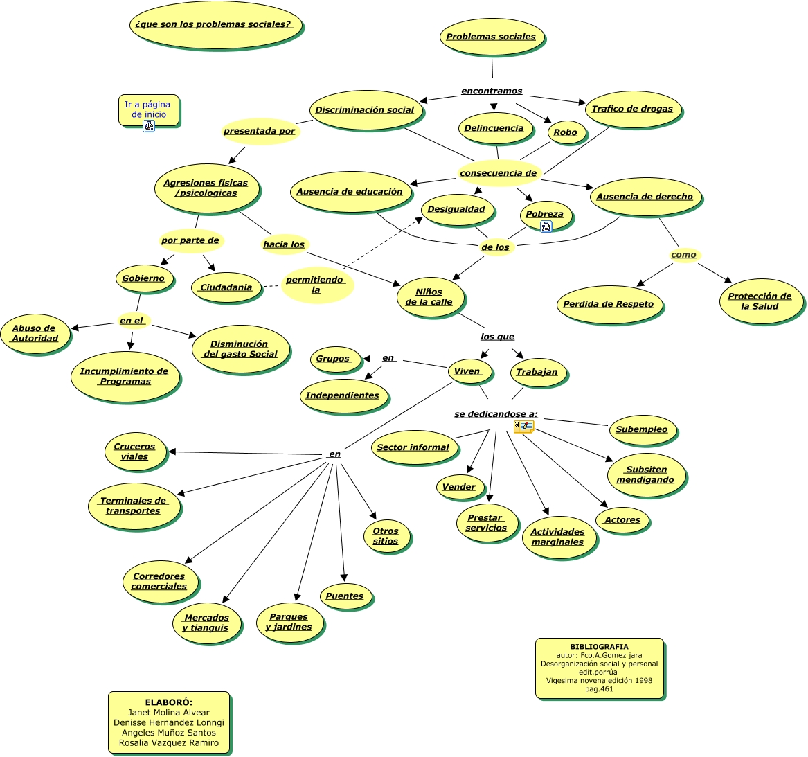 Este mapa conceptual tiene información relacionada a: problemas sociales, Viven se dedicandose a: Actividades marginales, Niños de la calle los que Trabajan, Ausencia de derecho de los Niños de la calle, Agresiones fisicas /psicologicas por parte de Ciudadania, Delincuencia consecuencia de Ausencia de derecho, Ausencia de derecho como Protección de la Salud, Subempleo se dedicandose a: Subsiten mendigando, Viven se dedicandose a: Prestar servicios, Problemas sociales encontramos Trafico de drogas, Sector informal se dedicandose a: Subsiten mendigando