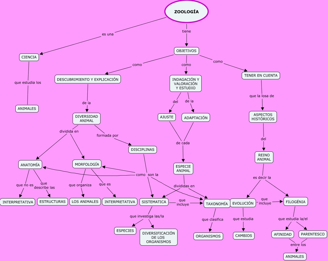 Este Cmap, tiene información relacionada con: ZOOLOGÍA, DISCIPLINAS como son la MORFOLOGÍA, ANATOMÍA que describe las ESTRUCTURAS, TENER EN CUENTA que la losa de ASPECTOS HISTÓRICOS, DISCIPLINAS como son la SISTEMATICA, ESPECIE ANIMAL divididas en TAXONOMÍA, ANATOMÍA que no es INTERPRETATIVA, DIVERSIDAD ANIMAL formada por DISCIPLINAS, CIENCIA que estudia los ANIMALES, SISTEMATICA que investiga las/la ESPECIES, MORFOLOGÍA que es INTERPRETATIVA, ESPECIE ANIMAL divididas en SISTEMATICA, DISCIPLINAS como son la TAXONOMÍA, OBJETIVOS como TENER EN CUENTA, INDAGACIÓN Y VALORACIÓN Y ESTUDIO de la ADAPTACIÓN, DIVERSIDAD ANIMAL dividida en ANATOMÍA, SISTEMATICA que incluye TAXONOMÍA, ZOOLOGÍA tiene OBJETIVOS, TAXONOMÍA que clasifica ORGANISMOS, ADAPTACIÓN de cada ESPECIE ANIMAL, DIVERSIDAD ANIMAL dividida en MORFOLOGÍA